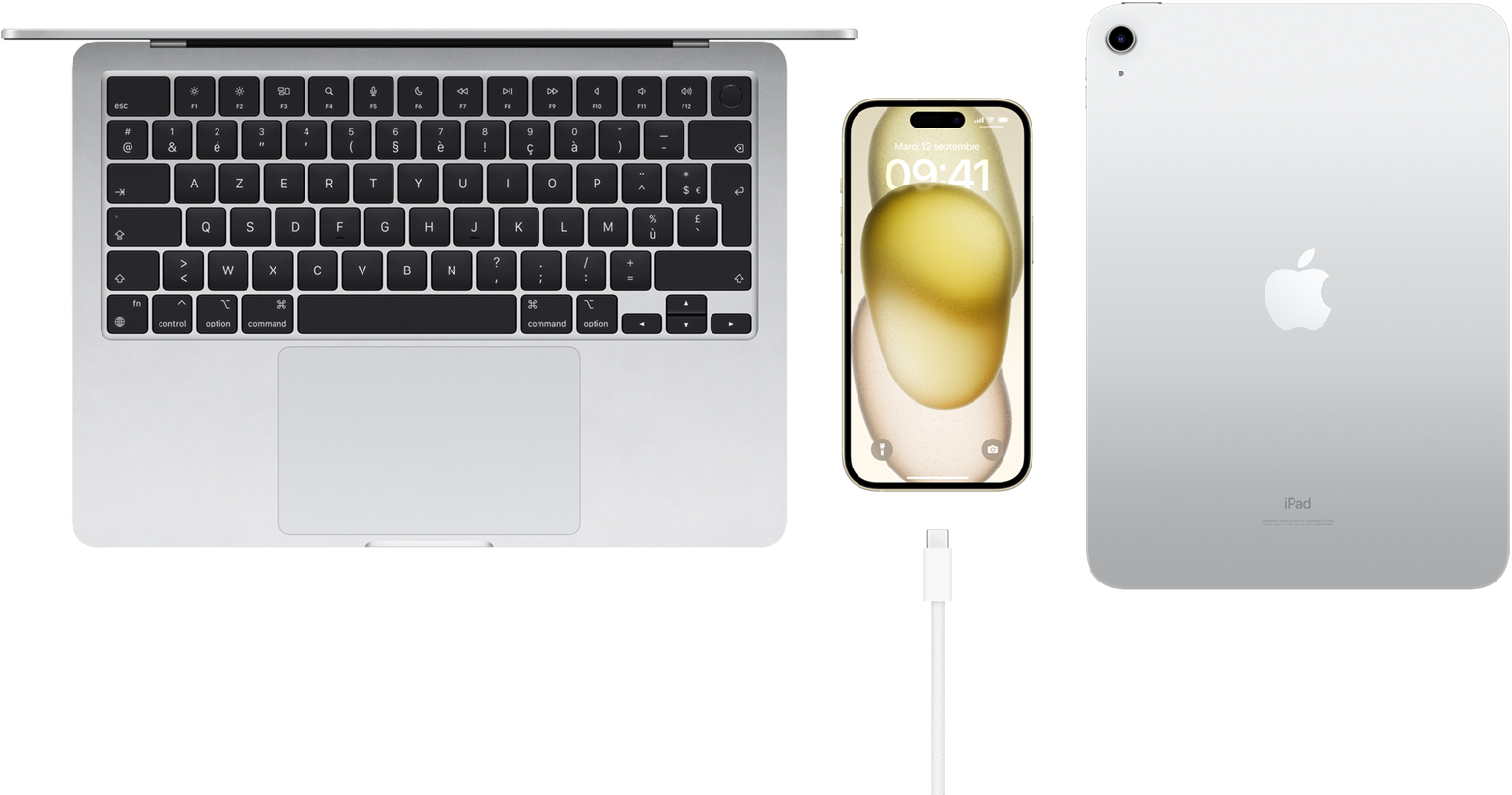 Le nouveau connecteur USB-C vous permet de recharger votre Mac ou iPad avec le même câble que votre iPhone 15. Vous pouvez même utiliser votre iPhone 15 pour recharger votre Apple Watch ou vos AirPods5. Fini, les câbles emmêlés.